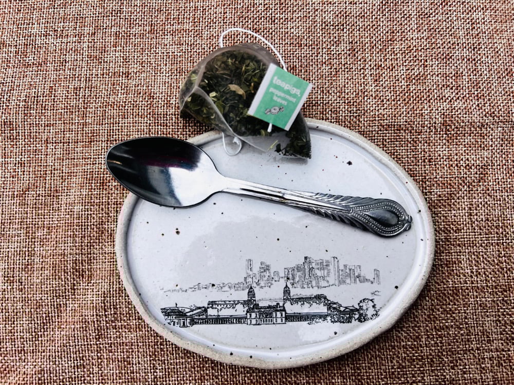 A neat spot for the spoons next to the kettle, and it may even house a few tea bags before they get as far as the compost bin. A spoon rest keeps kitchen sides clean and is a thoughtful gift for any cook or tea drinker. Features my line drawing of The Queen’s House in Greenwich, one of our local gems and one of the best museums in London.